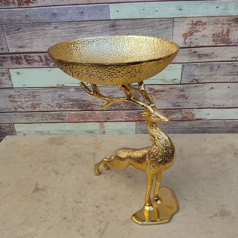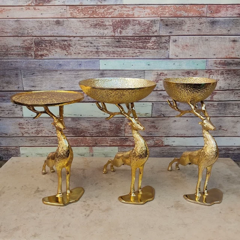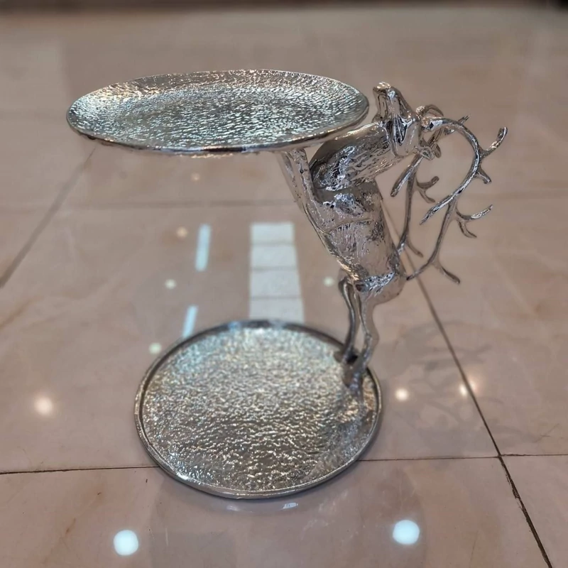 شیرینی خوری آلومینیومی مدل گوزن کشیده در دو رنگ طلایی و سیلور