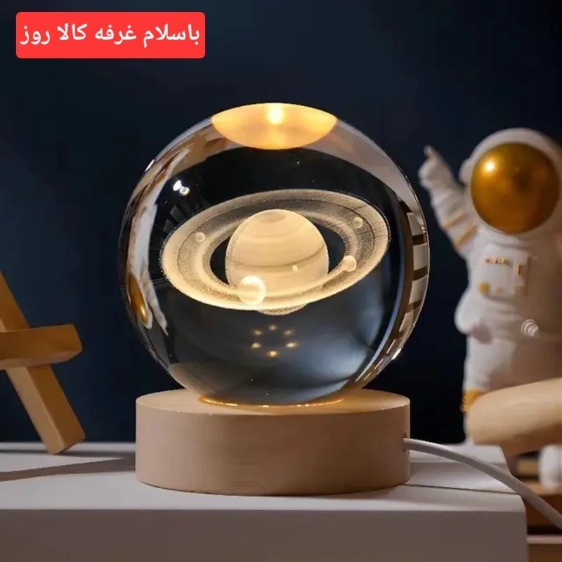 چراغ خواب رومیزی مدل گوی کریستالی 3D طرح سیاره زحل قطر 6سانتی متر