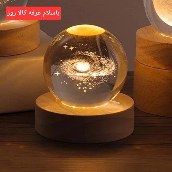 چراغ خواب رومیزی مدل گوی کریستالی طرح راه شیری 3D قطر 6سانتی متر