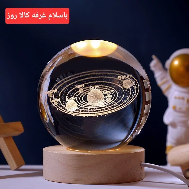 چراغ خواب رومیزی مدل گوی کریستال طرح منظومه شمسی 3D قطر 6سانتی متر