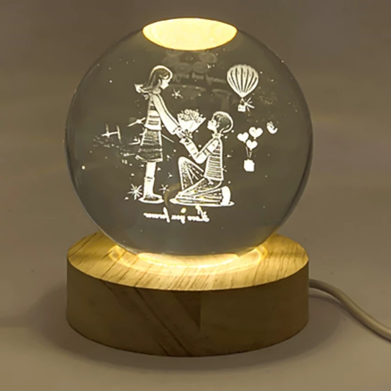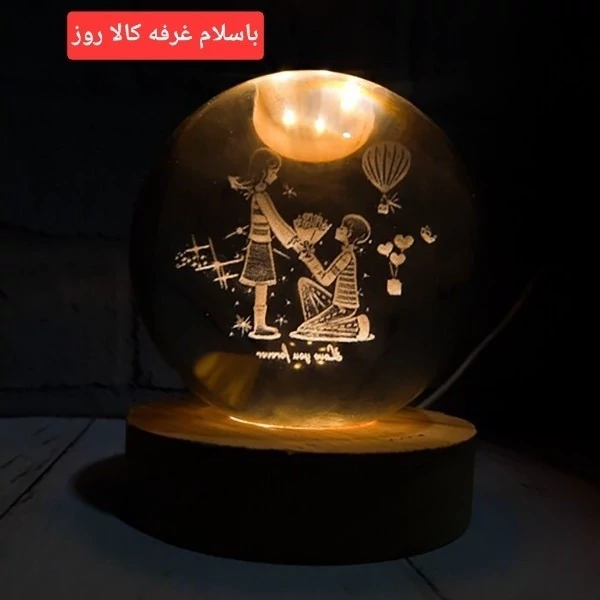 چراغ خواب مدل گوی کریستال طرح دختر و پسر عاشق قطر 8سانتی متر