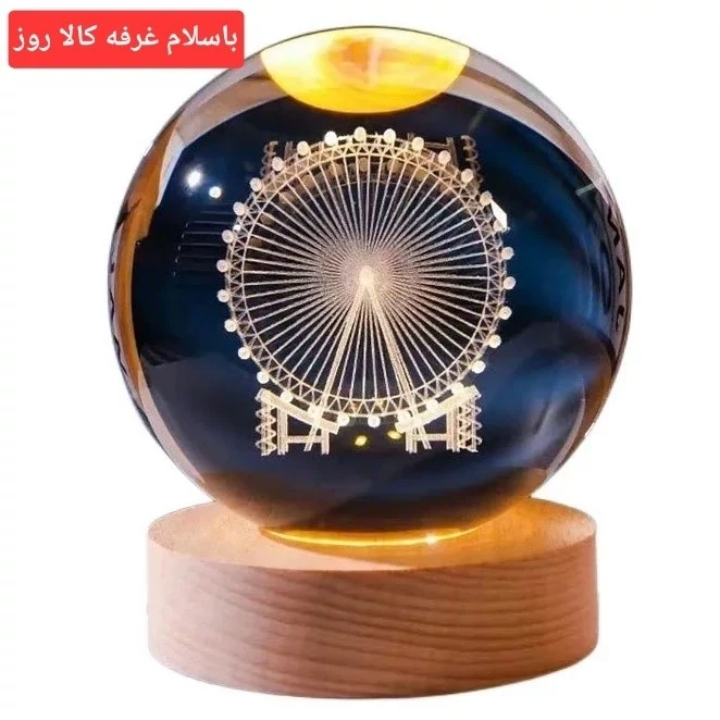 چراغ خواب مدل گوی کریستال طرح چرخ وفلک قطر 8سانتی متر