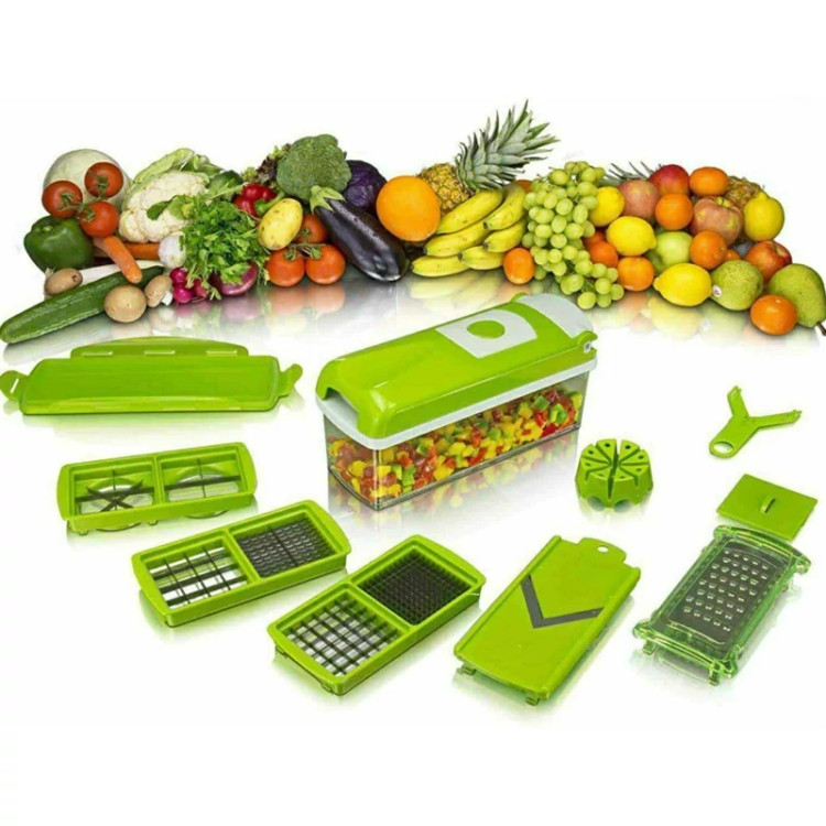 این محصول یک وسیله چند کاره می باشد و یک پک کامل شامل خردکن در شکل های مختلف، لهکن، پوستکن و رنده تیز با روکش به همراه یک ظرف دربدار ذخیرهسازی است که دیگر نیاز شما را برای استفاده از روش های قدیمی رفع می کند. با نایسر دایسر، آمادهسازی موادغذایی قبل از پخت غذا در کمترین زمان ممکن و امنترین روش انجام خواهد شد.