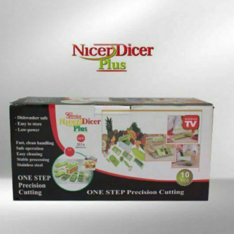 نایسر دایسر پلاس وسیله ای چند کاره شامل خردکن در شکل های مختلف، لهکن، پوستکن و رنده تیز با روکش به همراه یک ظرف دربدار نگهدارنده مواد غذایی است که شما را از داشتن چندین وسیله بی نیاز می کند و در سریع ترین زمان مواد اولیه سالاد یا غذا را آماده می کند.
