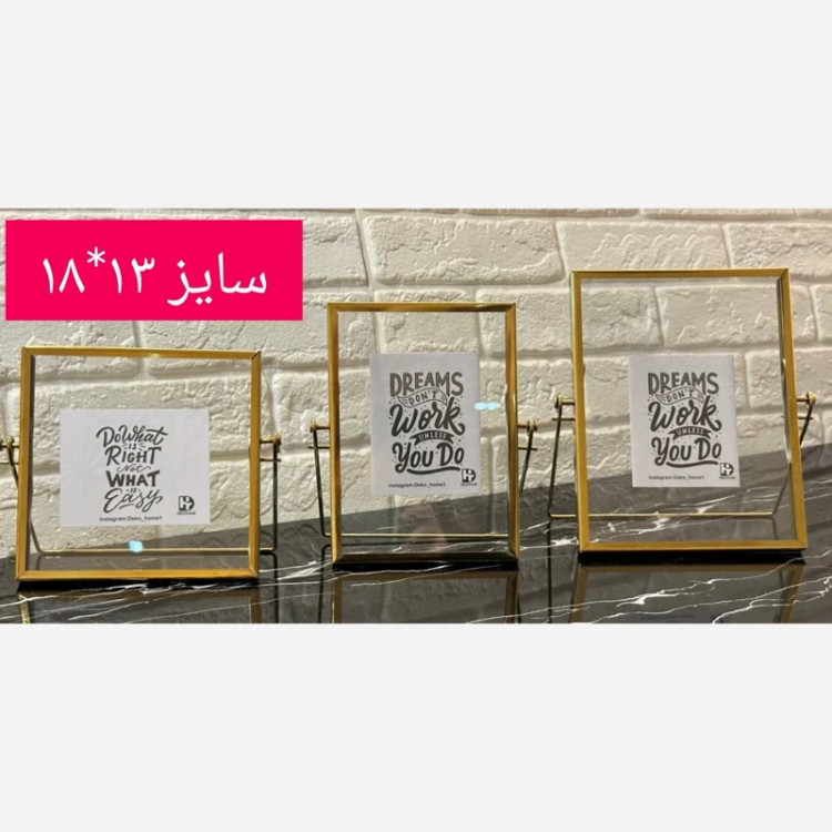 فریم فلزی این قاب متناسب با سایز عکس 13*18 است. عکس بین دو لایه شیشه قرار میگیرد و اطراف عکس با شیشه شفاف احاطه میشود.