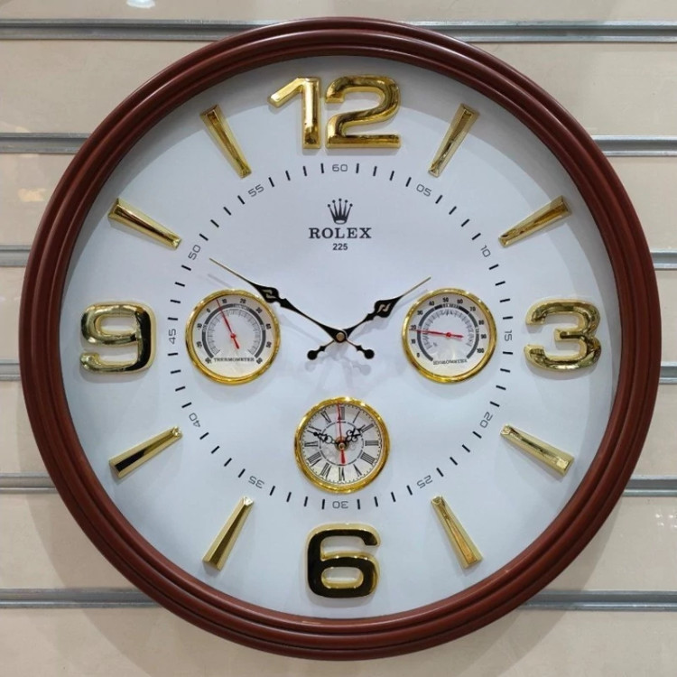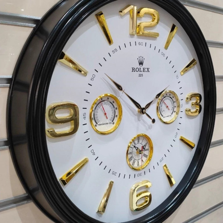 ساعت دیواری مدل گرد دوزمانه دارای دماسنج و رطوبت سنج رولکس قطر60سانت لوکس و زیبا سایز بزرگ ساعت لوکس