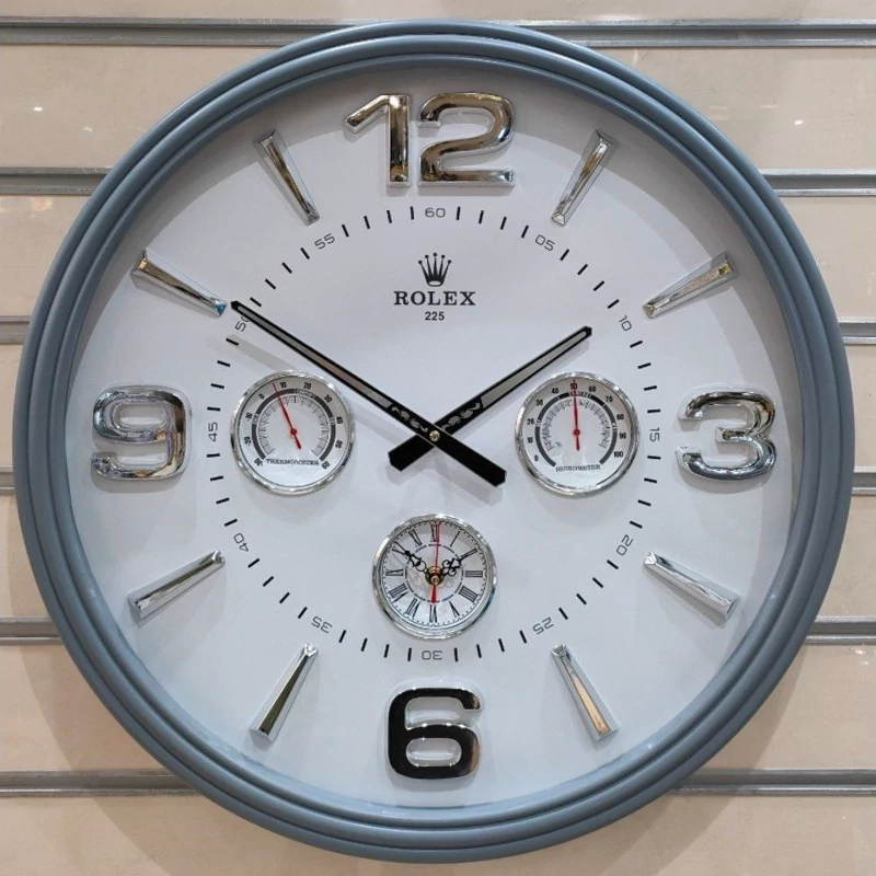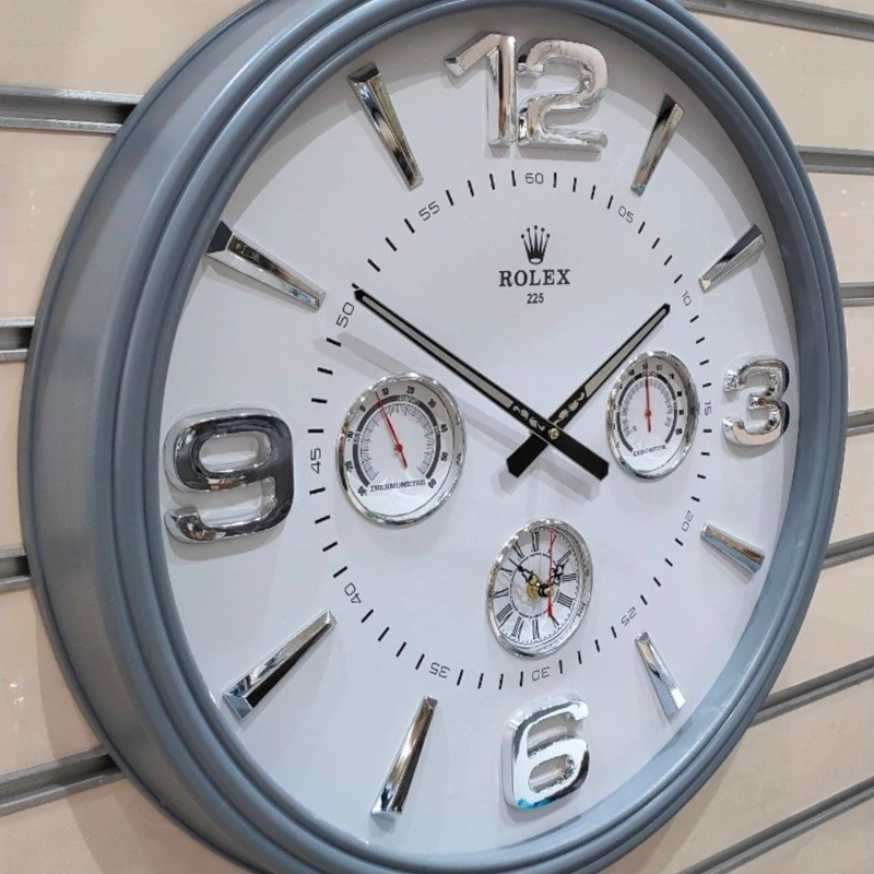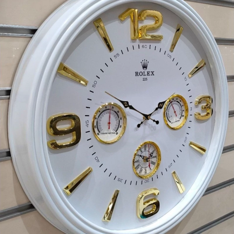 ساعت دیواری مدل گرد دوزمانه دارای دماسنج و رطوبت سنج رولکس قطر60سانت لوکس و زیبا سایز بزرگ ساعت لوکس