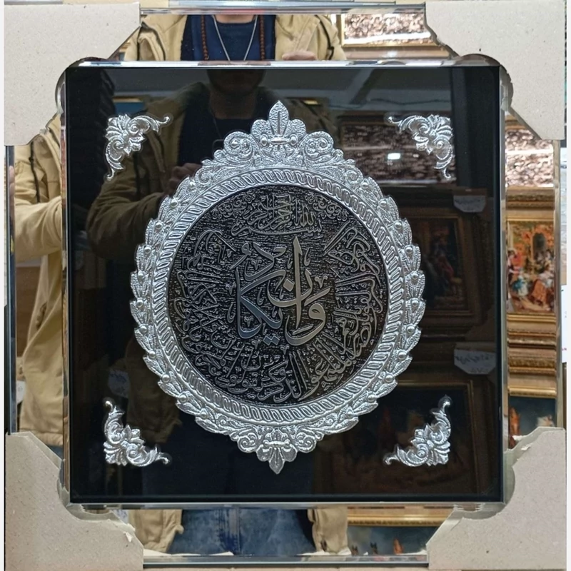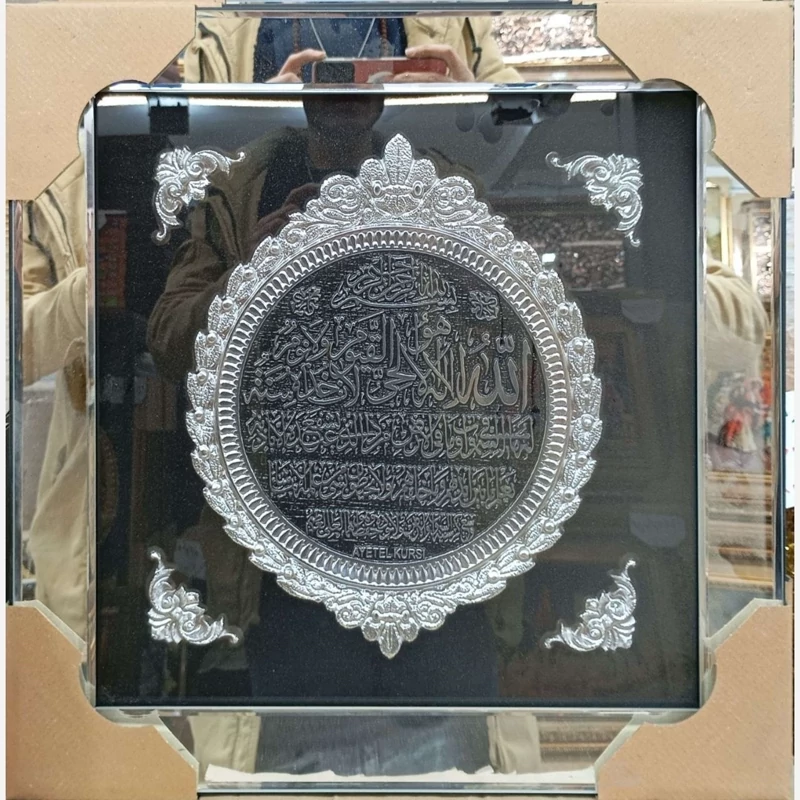 تابلو وکیوم آینه ای طرح آیه های قرآنی در دو رنگ نقره ای و برنز