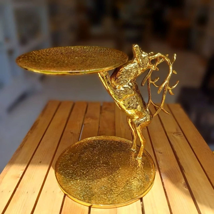 ست پذیرایی گوزن پرشی چکشی طلایی و سیلور شامل: میوه خوری شیرینی خوری آجیل خوری آبکاری سوپر براق با ضمانت جنس آلومینیوم درجه یک رنگ ثابت 4سال ضمانت