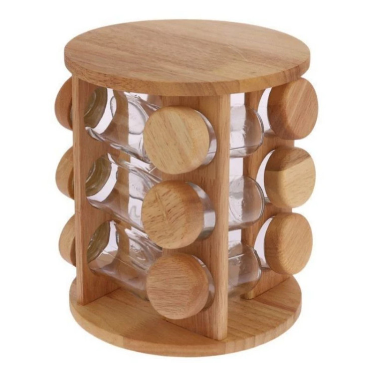 ست جا ادویه چوبی گردان 12تایی ( صفحه گرد) کیفیت درجه یک جاادویه چرخشی