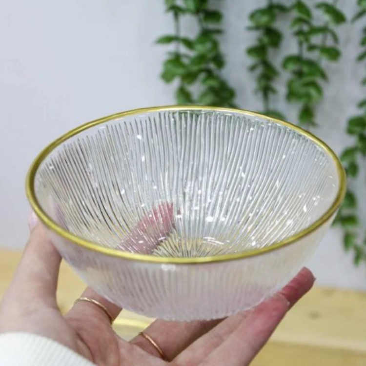 جنس بدنه بلور دارای لبه طلایی رنگ بسیار شیک و زیبا قابل شستشو دارای شیار هایی در اطراف بدنه مناسب برای ماست و ترشی و زیتون پرورده و ... ابعاد محصول : قطر دهانه 12 سانتی متر و ارتفاع 5 سانتی متر