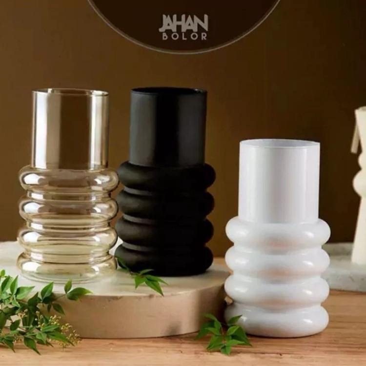 گلدان شیشه ای رنگی نقش برجسته در سه رنگ مختلف کیفیت عالی