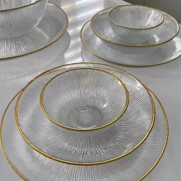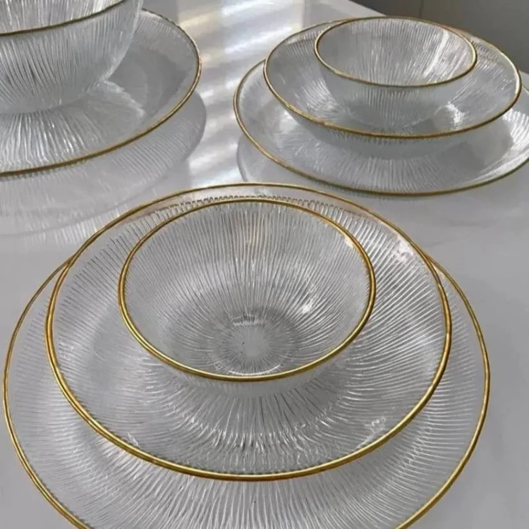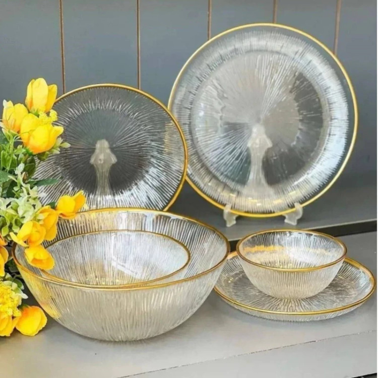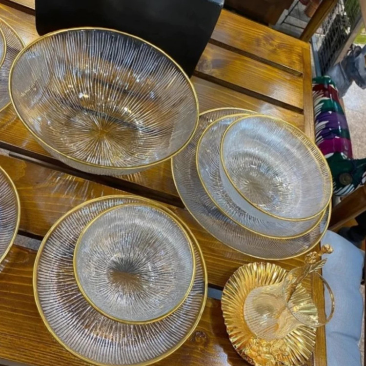 سرویس 33 پارچه غذاخوری کریستال سولو دور طلایی(6نفره،درجه یک،صادراتی) سرویس غذاخوری33پارچه سولو لب طلا