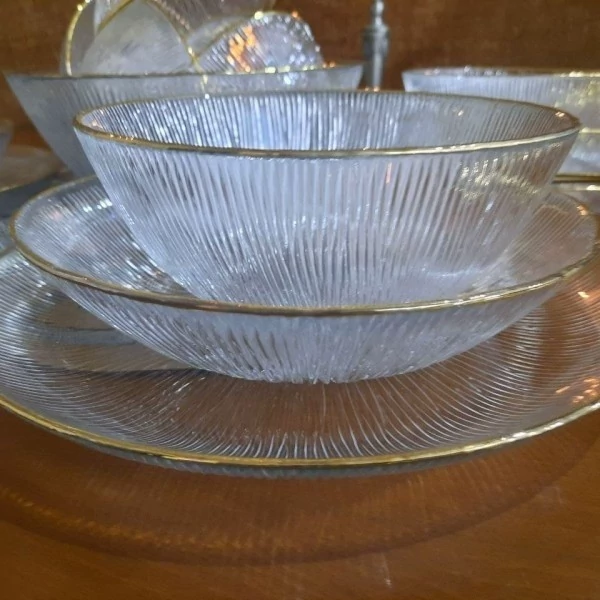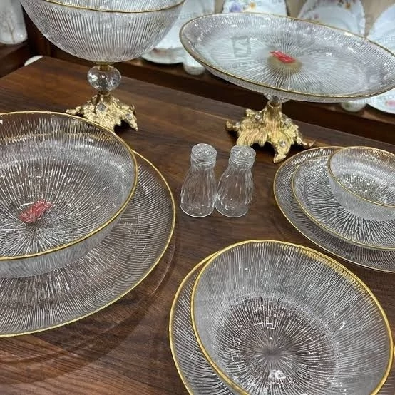 سرویس 33 پارچه غذاخوری کریستال سولو دور طلایی(6نفره،درجه یک،صادراتی) سرویس غذاخوری33پارچه سولو لب طلا