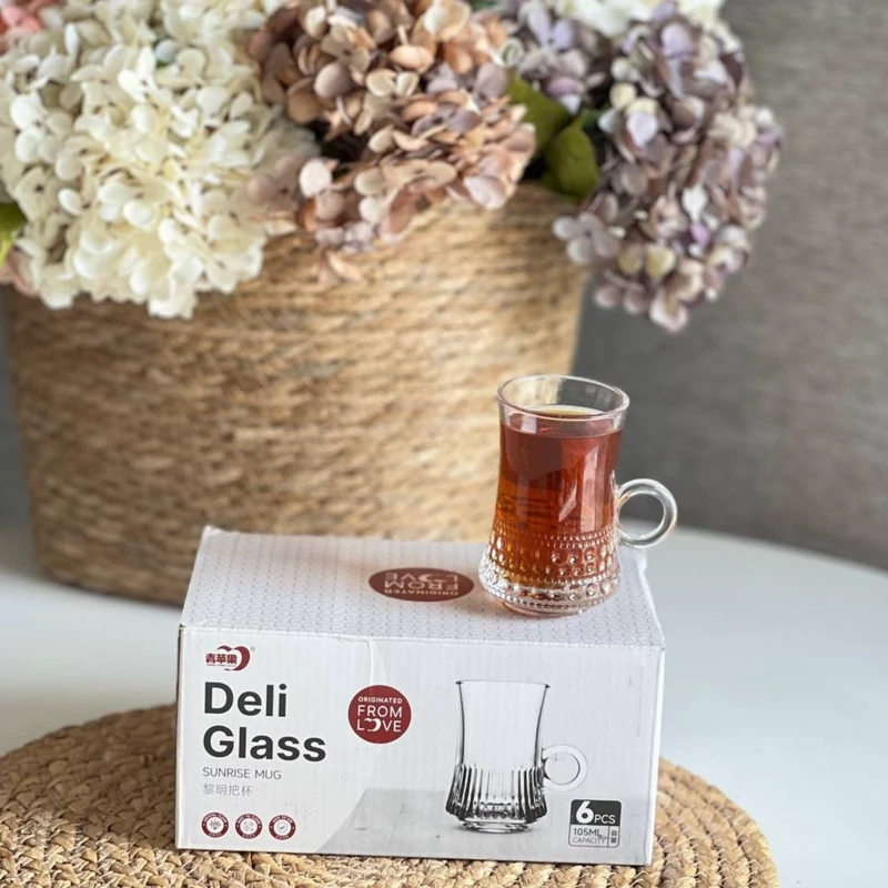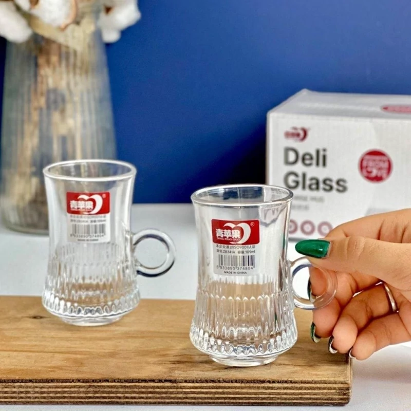 جنس: بلور بسته بندی 6 عددی قطر دهانه: 5 سانتی متر ارتفاع: 9 سانتی متر حجم: 105 میلی لیتر برند دلی محصول چین