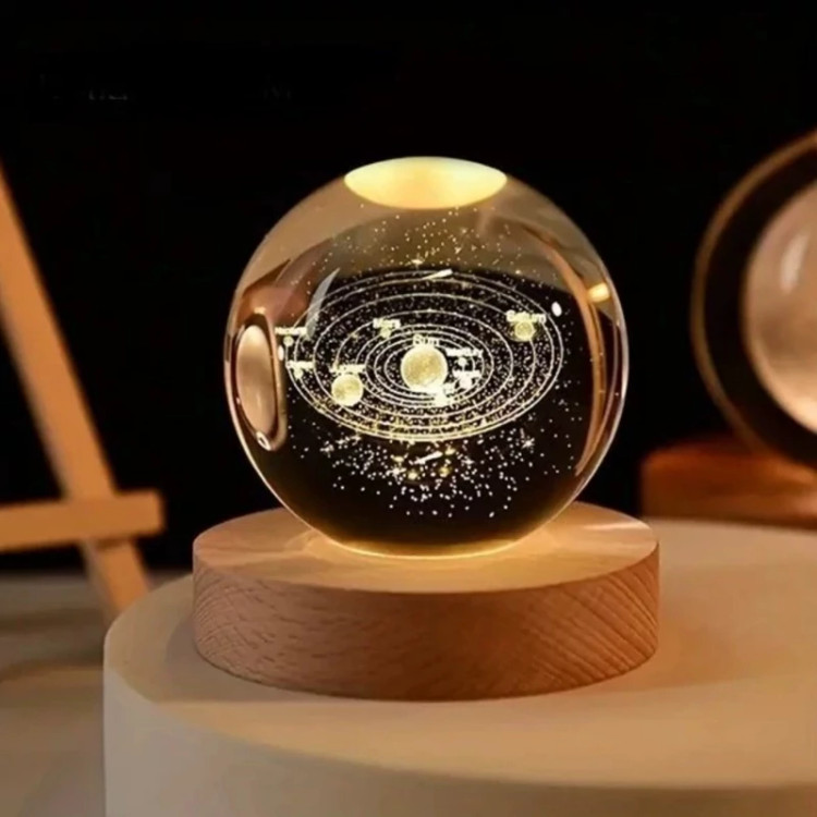 این چراغ خواب کریستالی به صورت سه بعدی و در طرح سیارات منظومه شمسی تولید شده که باعث جذابیت بیشتر اتاق خواب شما می شود. جنس این گوی شیشه ای از کریستال فشرده می باشد و همچنین دارای یک پایه چوبی و کابل برق USB می باشد