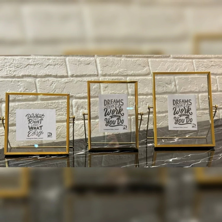 فریم فلزی این قاب متناسب با سایز عکس است. عکس بین دو لایه شیشه قرار میگیرد و اطراف عکس با شیشه شفاف احاطه میشود.