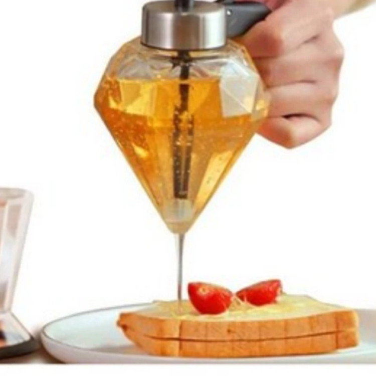 از دیگر مشخصات این ظرف طراحی و طرز کار ان می باشد که آن را به محصولی پرکاربرد تبدیل کرده است. قسمت بالایی ظرف درب آن قرار دارد که میان آن لوله ای وجود دارد. این لوله به شاسی روی درب متصل است که با فشردن آن محتویات داخل ظرف به آرامی از حفره ی کوچک پایین ظرف خارج می شود. این نحوه ی طراحی باعث شده که بتوانید به اندازه ی نیازتان از محتویات داخل ظرف استفاده کنید. علاوه بر این استفاده از خوراکی هایی مثل عسل نیز به راحتی امکان پذیر خواهد بود. این محصول در کنار کاربردی بودن شکل ظاهری زیبایی دارد و استفاده از آن میز غذایتان را شیک و زیبا می کند. همچنین مناسب نگهداری و سرو عسل، آبلیمو، روغن می باشد.