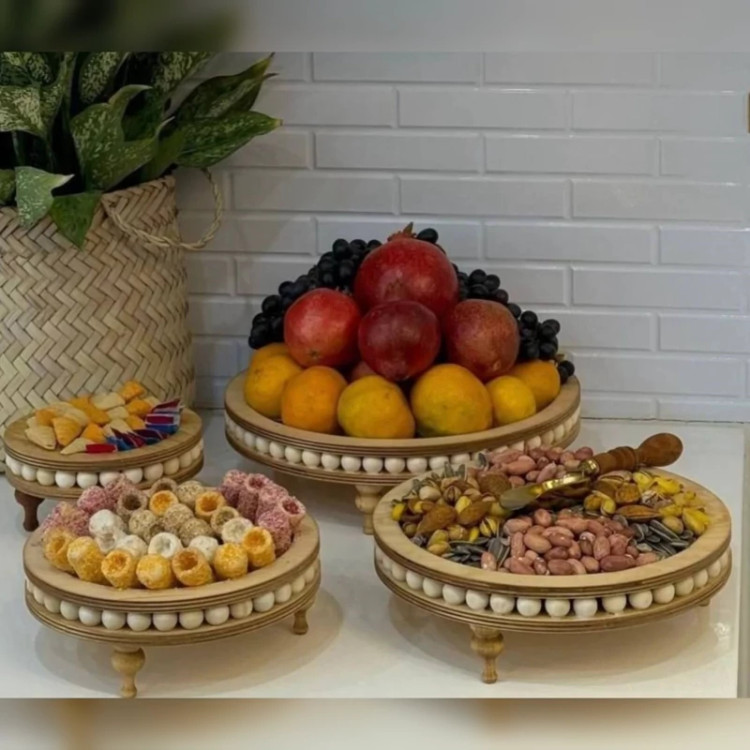 ست 4تکه پذیرایی مهره دار گرد و مربع رایزر گرد و مربع مهره دار 4سایز پایه خراطی کیفیت عالی سایز بزرگ