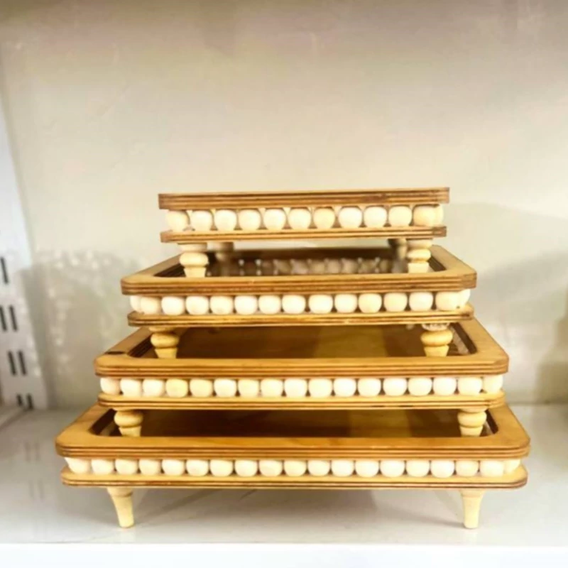 ست 4تکه پذیرایی مهره دار گرد و مربع رایزر گرد و مربع مهره دار 4سایز پایه خراطی کیفیت عالی سایز بزرگ