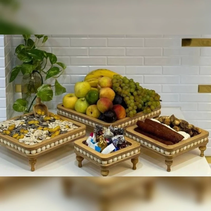 ست 4تکه پذیرایی مهره دار گرد و مربع