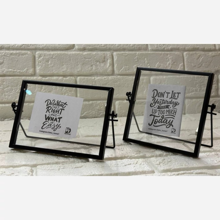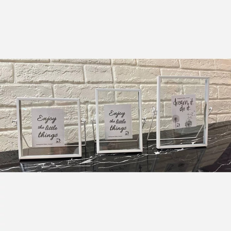 فریم فلزی این قاب متناسب با سایز عکس 15*15 است. عکس بین دو لایه شیشه قرار میگیرد و اطراف عکس با شیشه شفاف احاطه میشود.